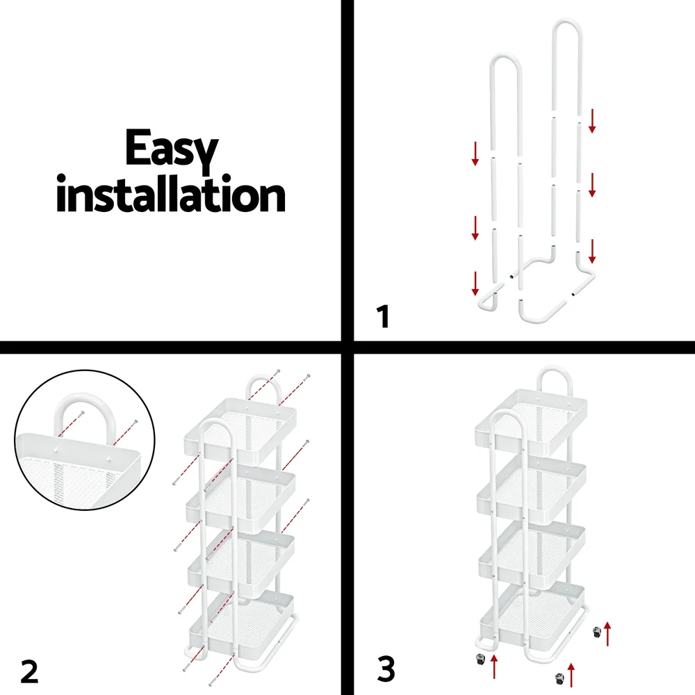 For convenient and portable storage, few can beat the classic Artiss Storage Trolley. With four tiers of deep trays, the trolley has a high storage capacity that is ideal for your craft room, kitchen, home office or playroom. Constructed with a steel frame, the unit is strong and stable whilst remaining lightweight and portable. Four smooth rolling wheels help you maneuver the trolley around the home, while two lockable wheels keep it in place. Thanks to its small footprint and vertical design, the trolley takes up very little space, fitting nicely anywhere in the home. Easy to install and maintain, you'll love having your essentials always at hand with the Artiss Storage Trolley.