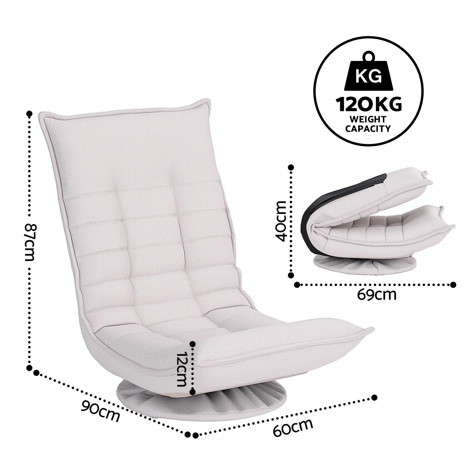 Enjoy a fun floor chair experience with a sturdy base that supports up to 120kg.