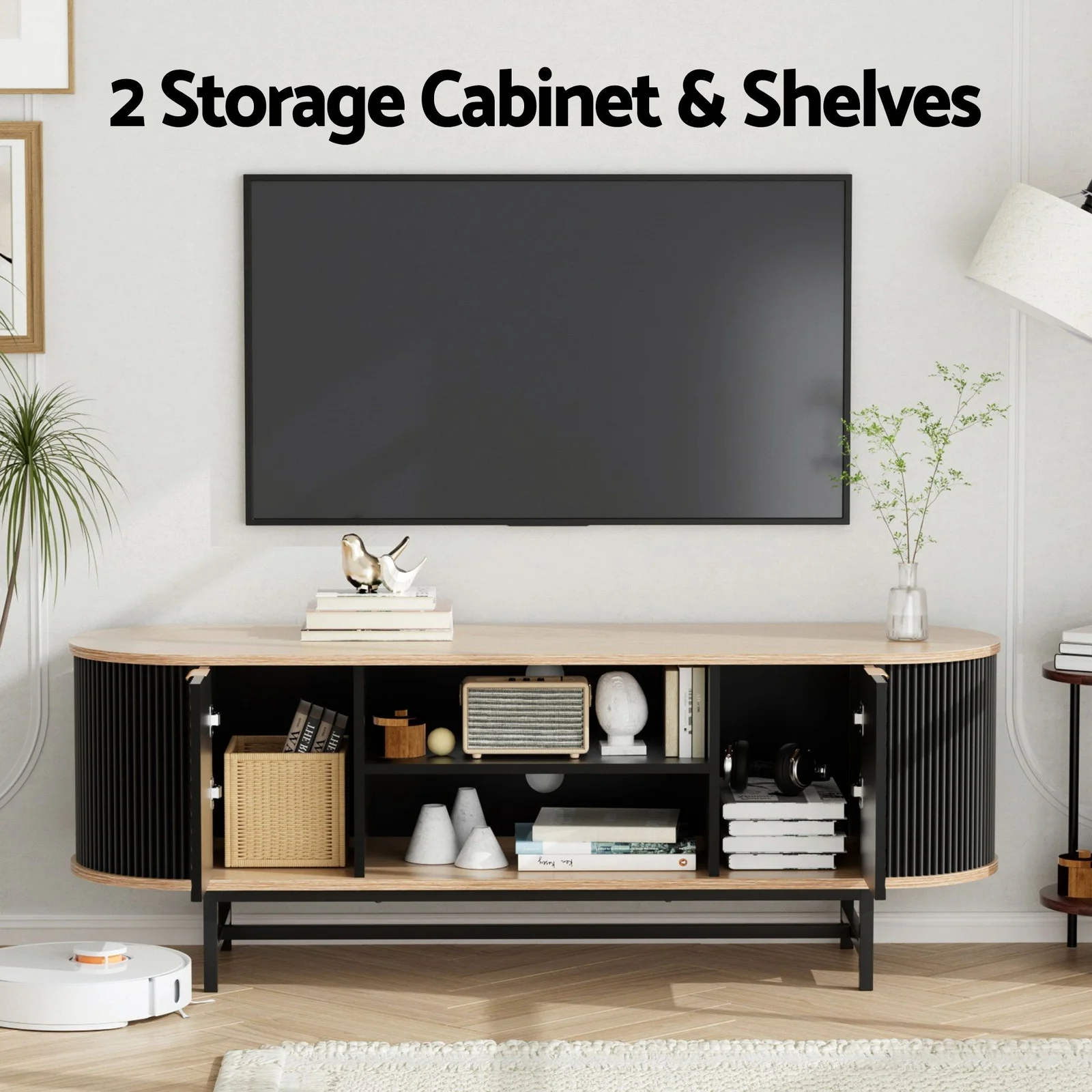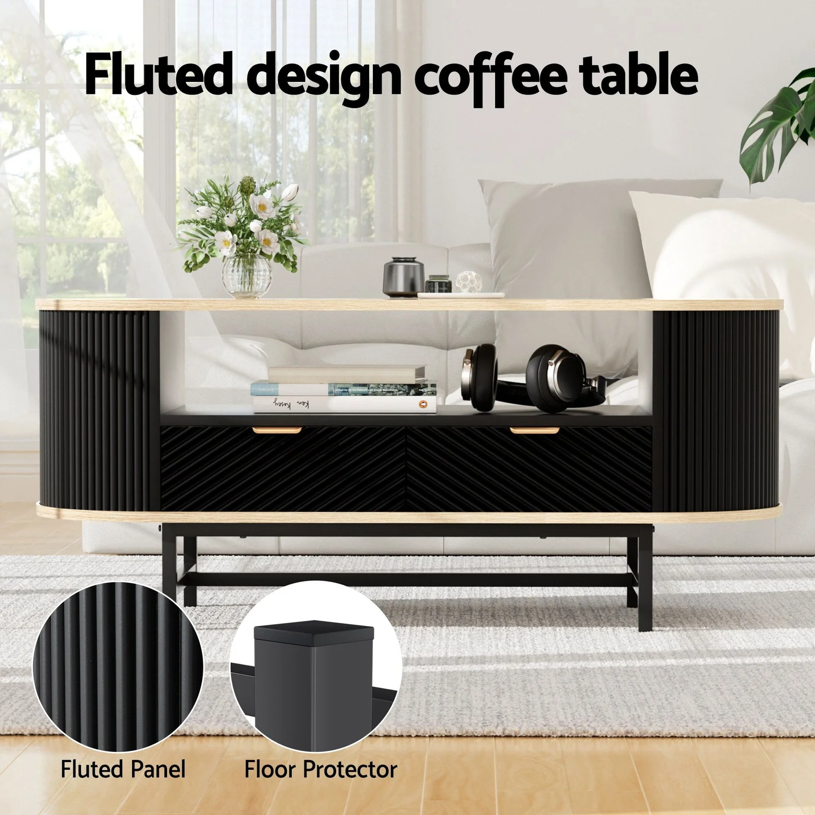 Revamp your lounge room with this stylish 2-piece black and pine furniture bundle! It includes a 140cm TV entertainment unit and a matching 110cm coffee table. The sturdy TV cabinet holds up to 60kg, featuring two soft-close cabinets, open shelving, cable management, and safe rounded corners. The elegant coffee table boasts a trendy fluted design, two drawers, and a large open shelf to easily organise your space. Both units are crafted from premium MDF with a durable, wipe-clean melamine finish, sleek metal handles, and floor protectors. The TV unit includes an anti-tip safety kit. Shipped securely in 3 packages. Simple assembly required. Upgrade your Aussie home today!