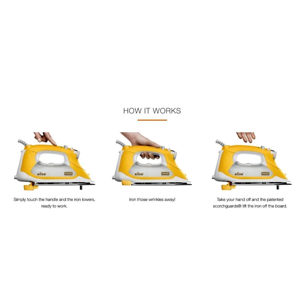 - Designed for Quilters and Sewers. Simply touch the handle and the iron lowers, ready to work.