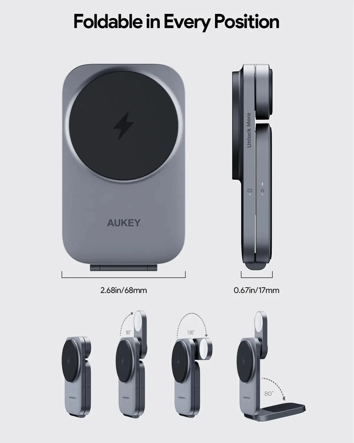 The AUKEY Foldable Wireless Charger LC-MC312 offers sleek design and versatile functionality, perfect for modern tech users. Its foldable feature allows easy portability and adaptability for any setup.