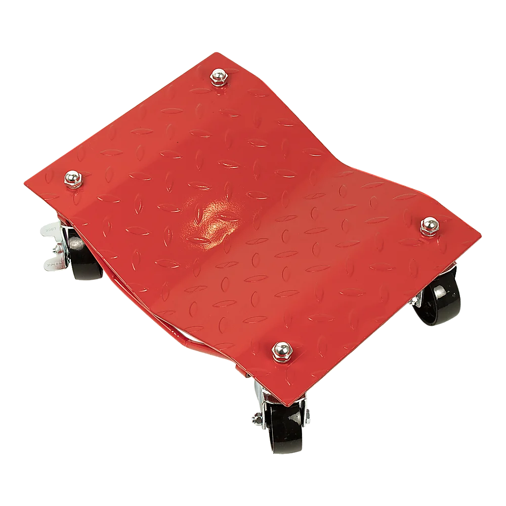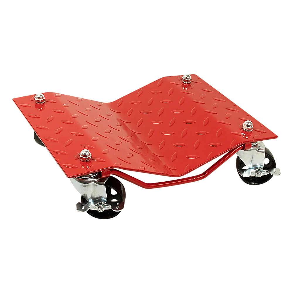 Designed with sturdiness in mind, the dollies are constructed using powder-coated, thick diamond plate steel so you can guarantee your money's worth. The dollies are equipped with 4 dual-bearing swivel casters, two of which have breaks to help control vehicle movement. The premium wheels have radial bearing axles that allow for easy one-person pushing. Despite the economical price, this product is factory tested and intended for professional or garage use. Purchase today at Randy Travis Machinery to get your vehicle repairs on the go.
