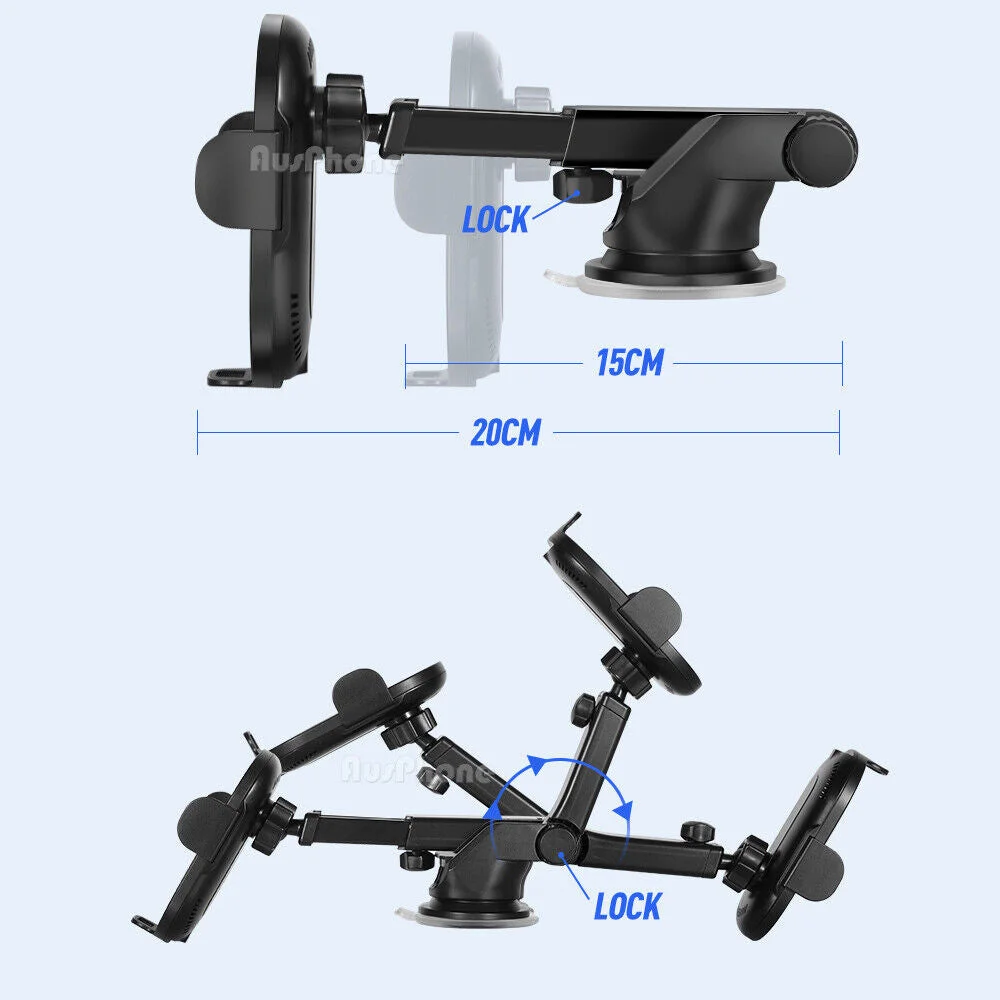 1. This wireless car mount charger combines the charger and the phone holder in one unit.