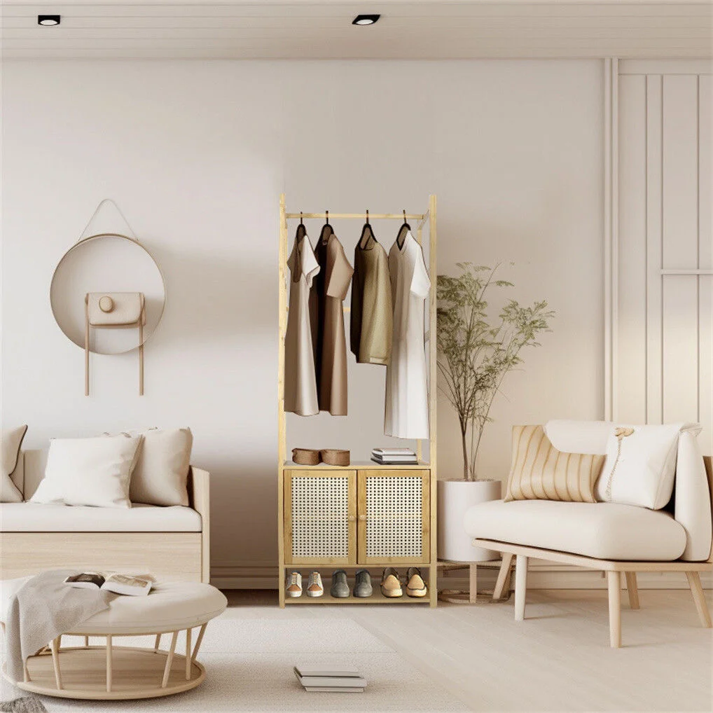 Bamboo Clothes Rack Coat Stand 168cm High Polish 53cm Length