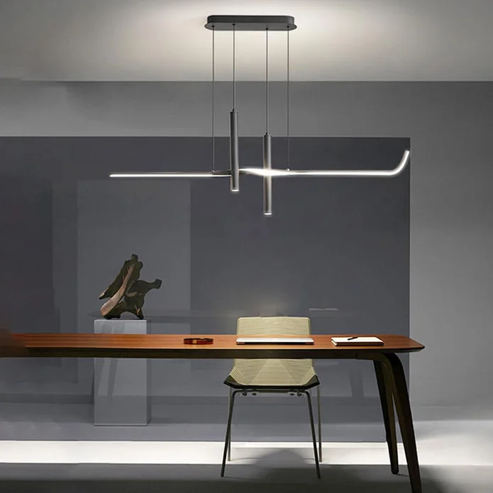 Upgrade your dining room, bar, or living room with this sleek and modern linear LED pendant light. Featuring a segmented straight-line design and advanced nano light guide technology, this light offers high-temperature resistance, anti-aging properties, and exceptional light transmission with uniform illumination. The energy-saving LED light source provides high brightness, true-to-life color rendering, and eye protection, making it ideal for any setting. This durable fixture is crafted with precision, ensuring long-lasting use, and its strong load-bearing capacity makes it suitable for both ceiling and integrated ceiling installations. Equipped with a remote control for step less dimming and easy 3-color lighting adjustments, it offers unparalleled convenience and versatility.