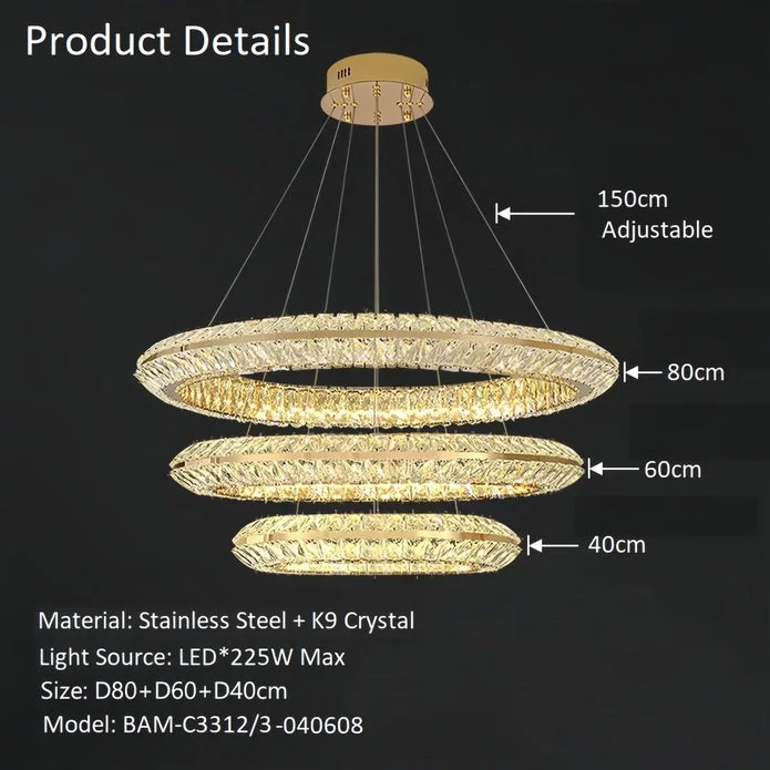 BAMDECOR A209 Colette Ceiling Chandelier Led Modern Circular Art Aluminum Light Fixture for Living Room Bedroom Indoor Decor(3 Rings)