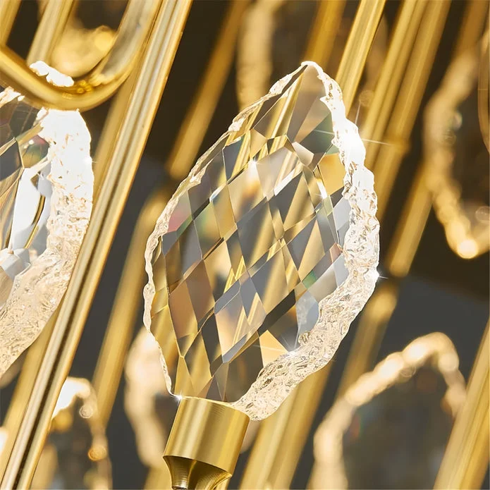This luxurious crystal-leaf chandelier is a statement lighting piece designed to elevate upscale living rooms, dining spaces, and grand foyers. Featuring a radiant gold body accented with delicately faceted crystal leaves, it provides a striking blend of elegance and modern opulence. Its sculptural, nature-inspired form offers both artistic appeal and high-quality illumination, making it an ideal centerpiece for sophisticated interior décor.