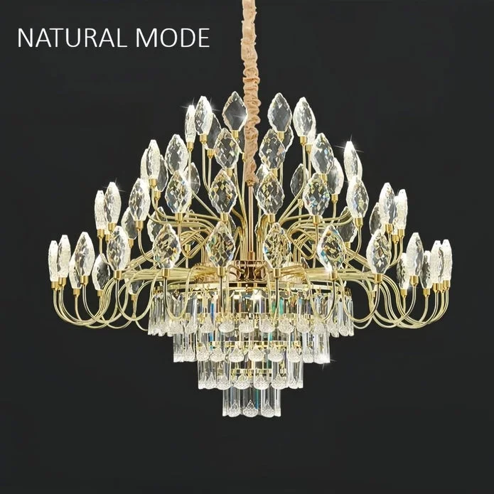 This luxurious crystal-leaf chandelier is a statement lighting piece designed to elevate upscale living rooms, dining spaces, and grand foyers. Featuring a radiant gold body accented with delicately faceted crystal leaves, it provides a striking blend of elegance and modern opulence. Its sculptural, nature-inspired form offers both artistic appeal and high-quality illumination, making it an ideal centerpiece for sophisticated interior décor.