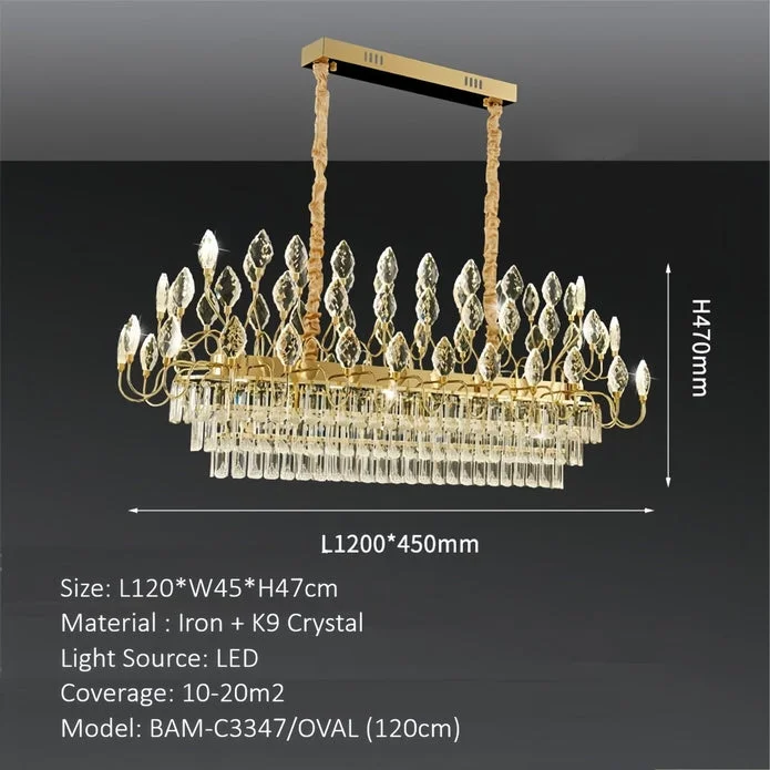This luxurious crystal-leaf chandelier is a statement lighting piece designed to elevate upscale living rooms, dining spaces, and grand foyers. Featuring a radiant gold body accented with delicately faceted crystal leaves, it provides a striking blend of elegance and modern opulence. Its sculptural, nature-inspired form offers both artistic appeal and high-quality illumination, making it an ideal centerpiece for sophisticated interior décor.