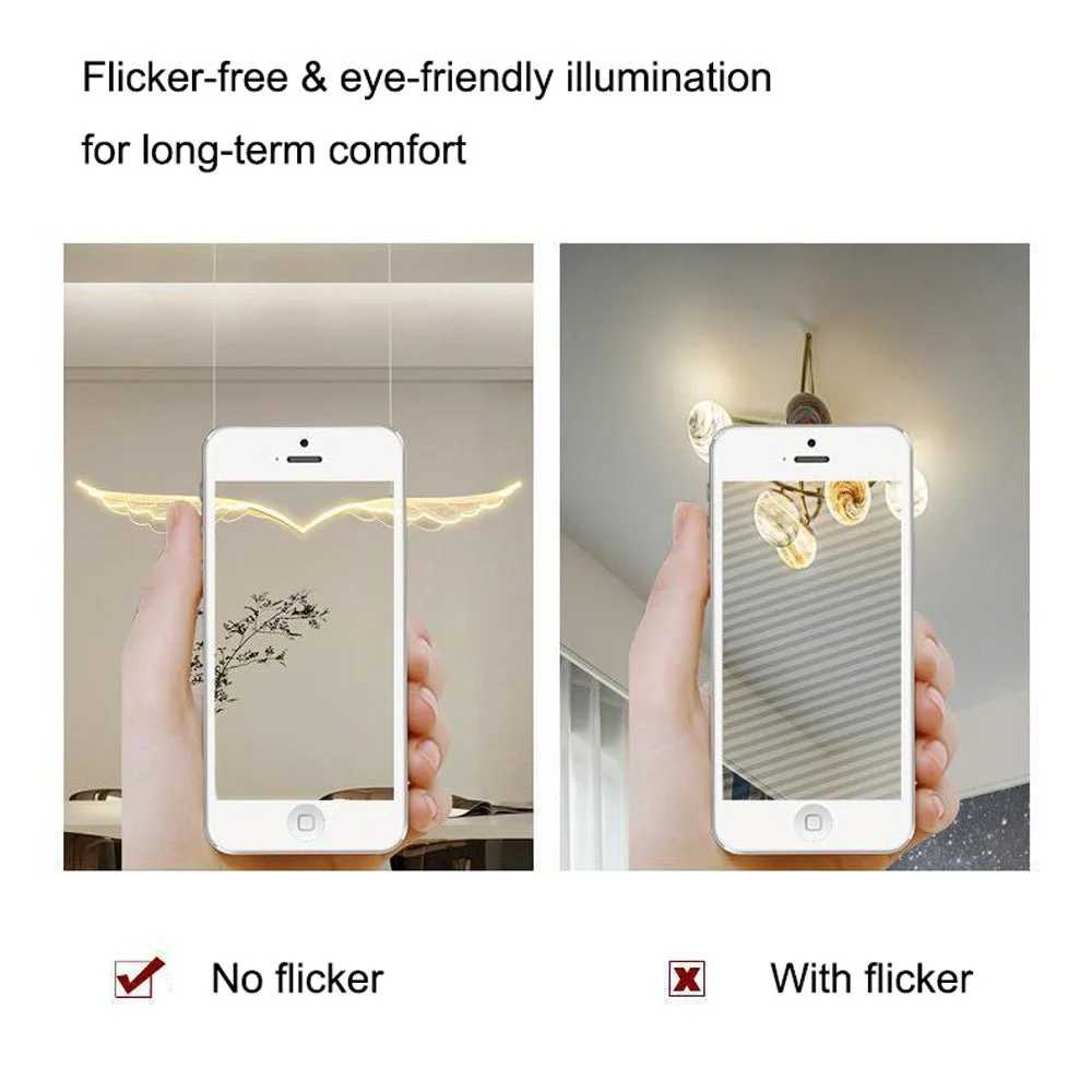 Add elegance and functionality to your space with this stunning wing-shaped LED ceiling light. Featuring 3-color changeable lighting and stepless dimming, this fixture adapts to your preferred ambiance with ease. The high-transparency guide light panel, crafted with laser-engraved textures, ensures uniform and flicker-free illumination, protecting your eyes and enhancing your environment. Perfect for modern living rooms, dining rooms, or offices, this light combines contemporary aesthetics with cutting-edge technology.