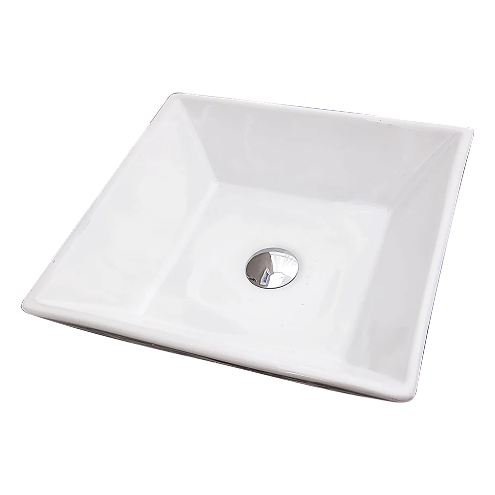 This attractive above-the counter basin is made from a ceramic construction. The basin is rectangular in shape and measures 415mm x 415mm x 120 mm.