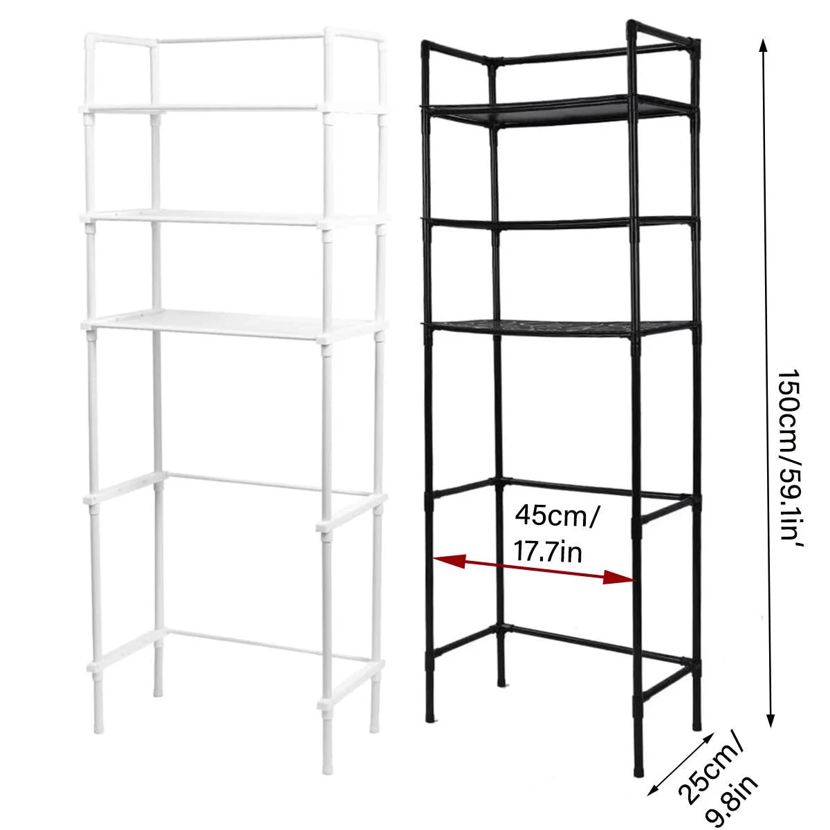 Maximise your bathroom’s storage with this practical over-toilet rack, designed to make the most of vertical space. Standing 59.1 inches tall, it features sturdy PP resin shelves and a robust metal frame to securely hold towels, toiletries, and other bathroom essentials. Available in sleek black and white, this storage rack blends seamlessly with both modern and classic bathroom decors, offering both style and functionality.