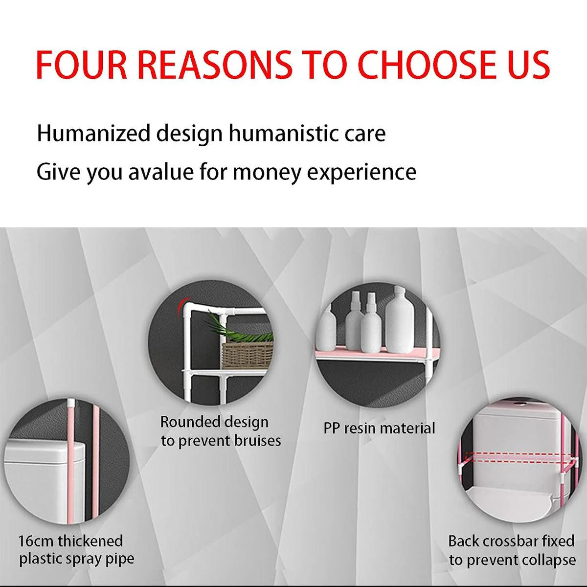 Space-Saving Design: Efficiently utilises vertical space by fitting over the toilet, ideal for smaller bathrooms.