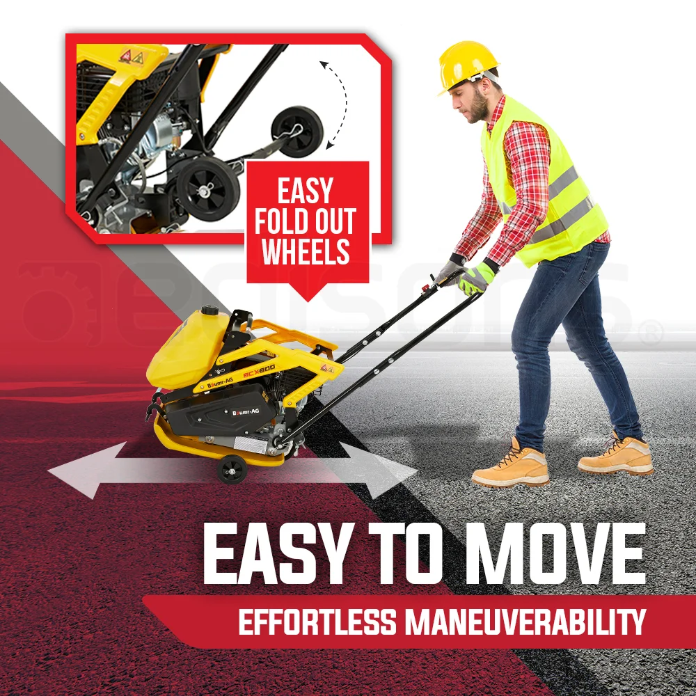 Take one look at the Baumr-AG BCX800 Site-Mate Series Plate Compactor and it’s plain to see that this is a truly next generation design. With high-tech manufacturing employed from the ground up the BCX800 is of course precision robot welded to provide maximum strength and inhibit rust. Encased in the protective frame is a class-leading easy-start air-cooled 7HP 4-Stroke engine that is tough, reliable and efficient.