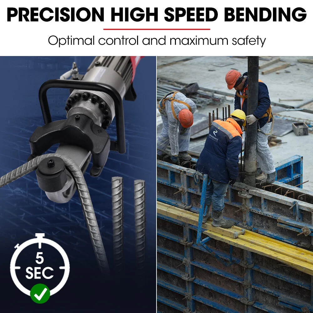 At its core is a high-torque 1150W motor paired with premium-grade hydraulics, built for continuous heavy-duty operation. With an impressive 5-second cycle time, it bends 16-25mm rebar, chains, bolts, and rods with unmatched efficiency—leaving outdated models in the dust.