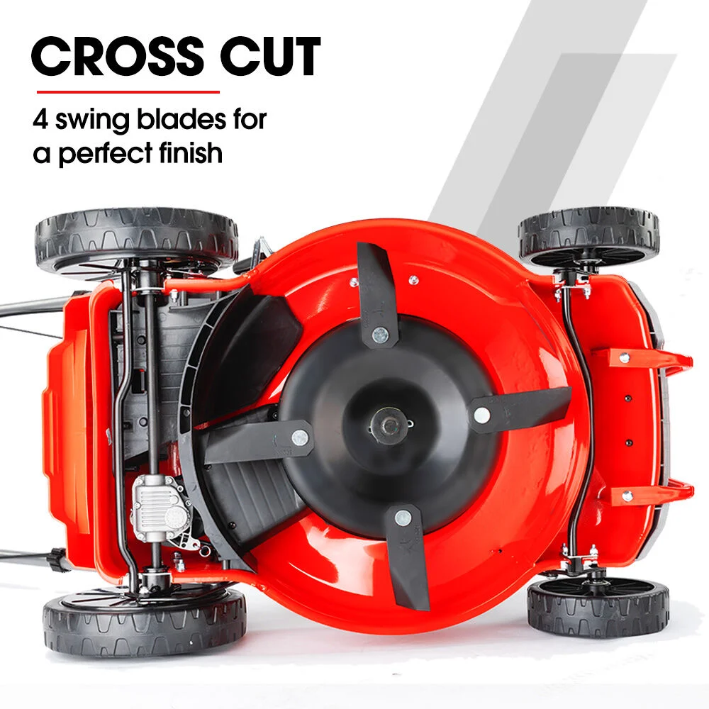 Enjoy 7 adjustable cutting heights (25mm75mm) for a perfect finish. Four swing-back blades provide a clean cut and handle debris impact. It has a large 55L catcher for less frequent emptying. The high-efficiency air filter boosts engine performance and reduces emissions.