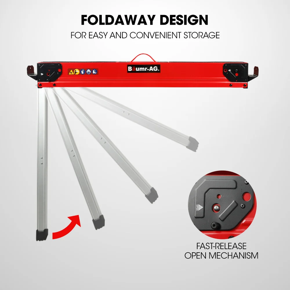 This pair of Baumr AG Heavy-Duty Saw Horses are built from premium galvanised steel. Powder-coated and zinc plated surfaces offer corrosion resistance and help to withstand those day-to-day knocks. These rugged sawhorses have a massive class-leading combined load capacity of up to 1000kg!