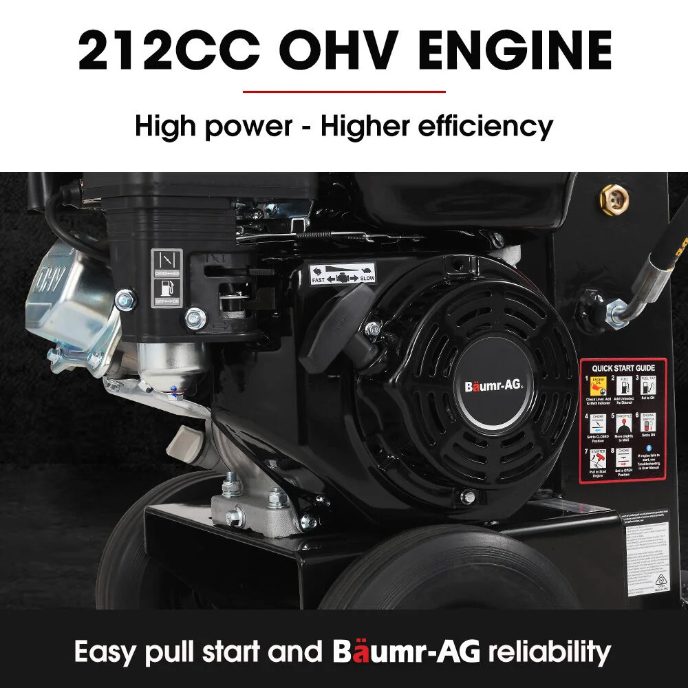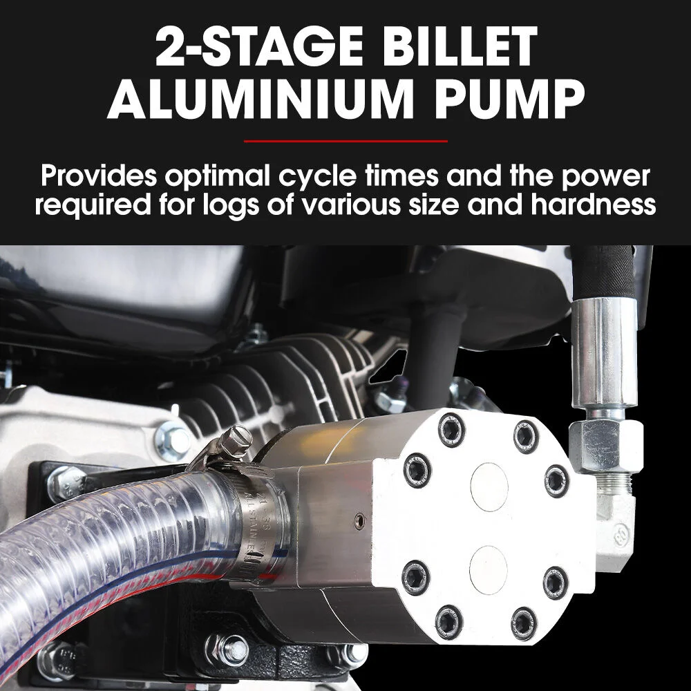 Petrol Power Splitting Force The Baumr-AG HPS500 is built for serious log splitting with a rugged 20-tonne ram force. Its 212cc 8HP 4-stroke motor delivers reliable performance, and can power through hardwood with a quick 10-second cycle time.