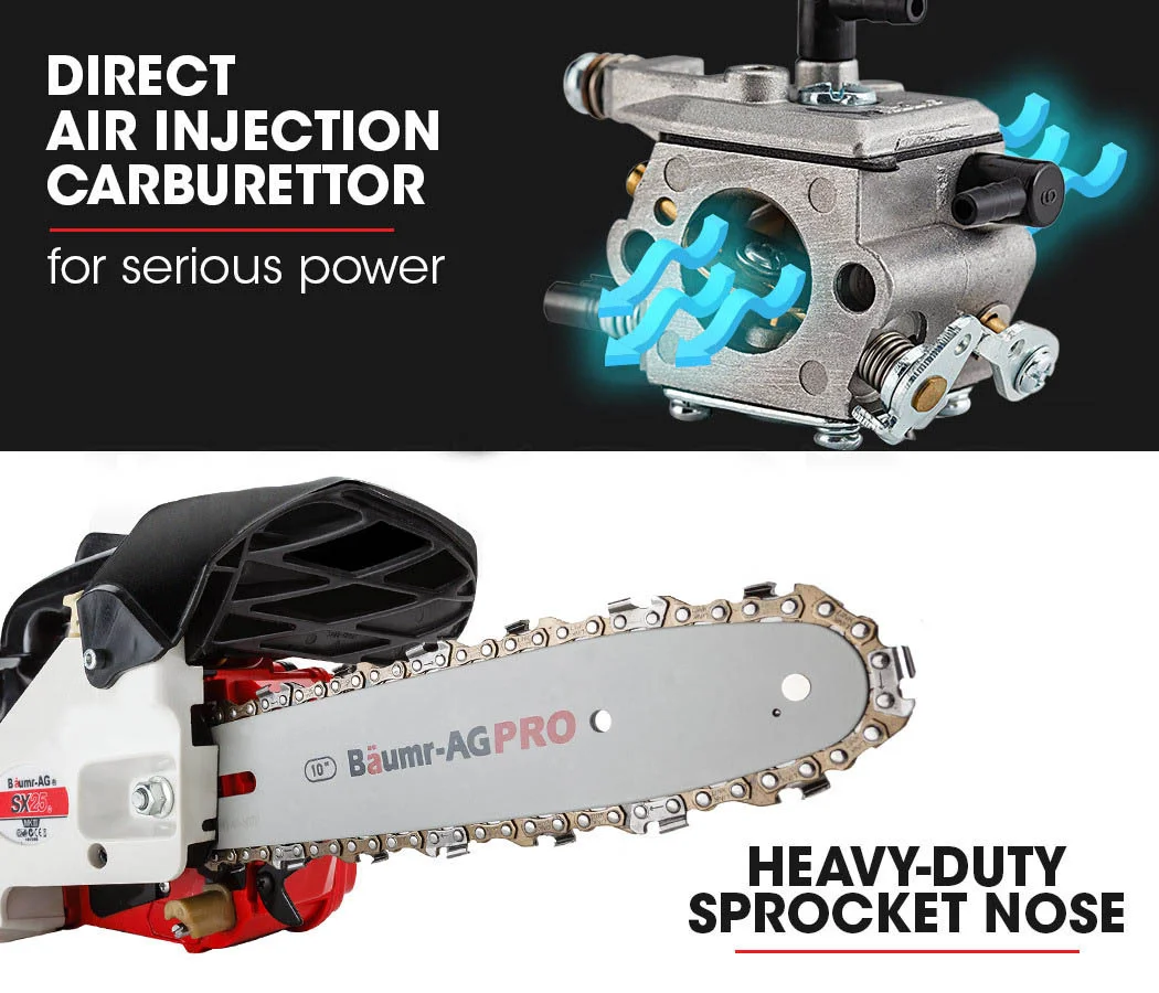 Built tough, this chainsaw boasts unparalleled levels of quality comparable to units retailing for over $1,000 - backed by extensive 12 month warranty. Perfect for tree work, preparing firewood, sectioning small to medium branches, clearing overhang, removing bushfire hazards or tucked in the back of the ute on your next 4WD adventure, your Baumr-AG might be small, but it delivers big time performance.