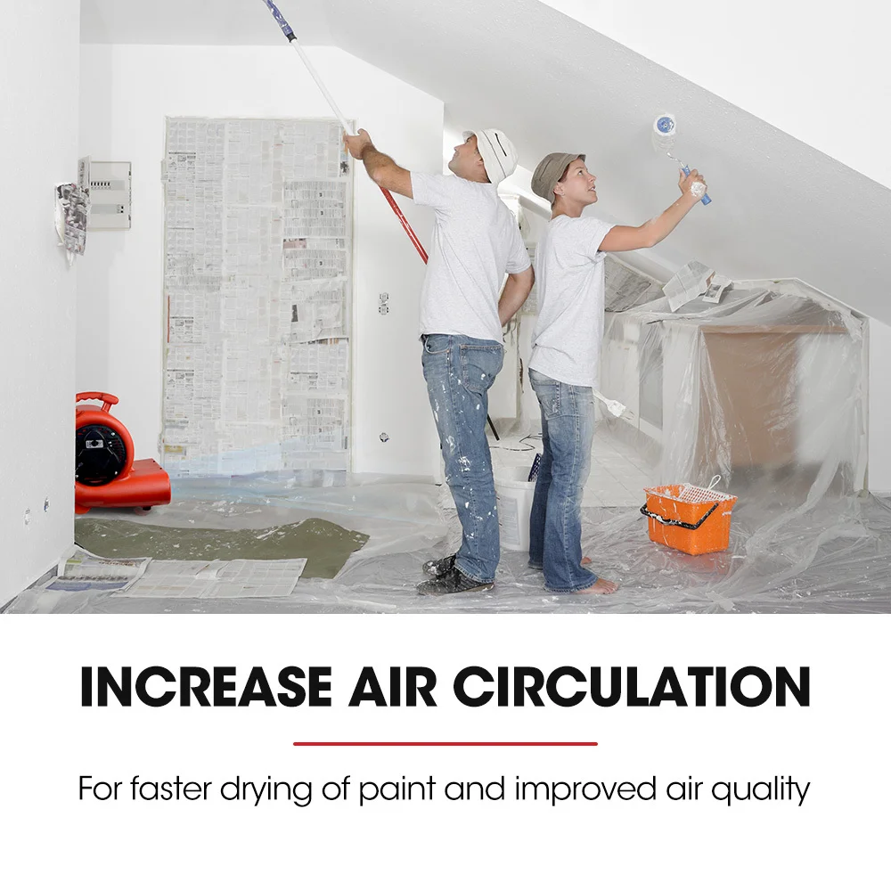 This Air Mover also features rubber feet which allow for adjusting the angle for the most effective drying of floors, walls and ceilings.