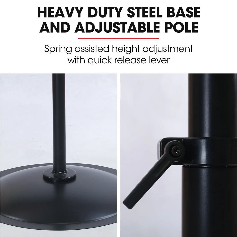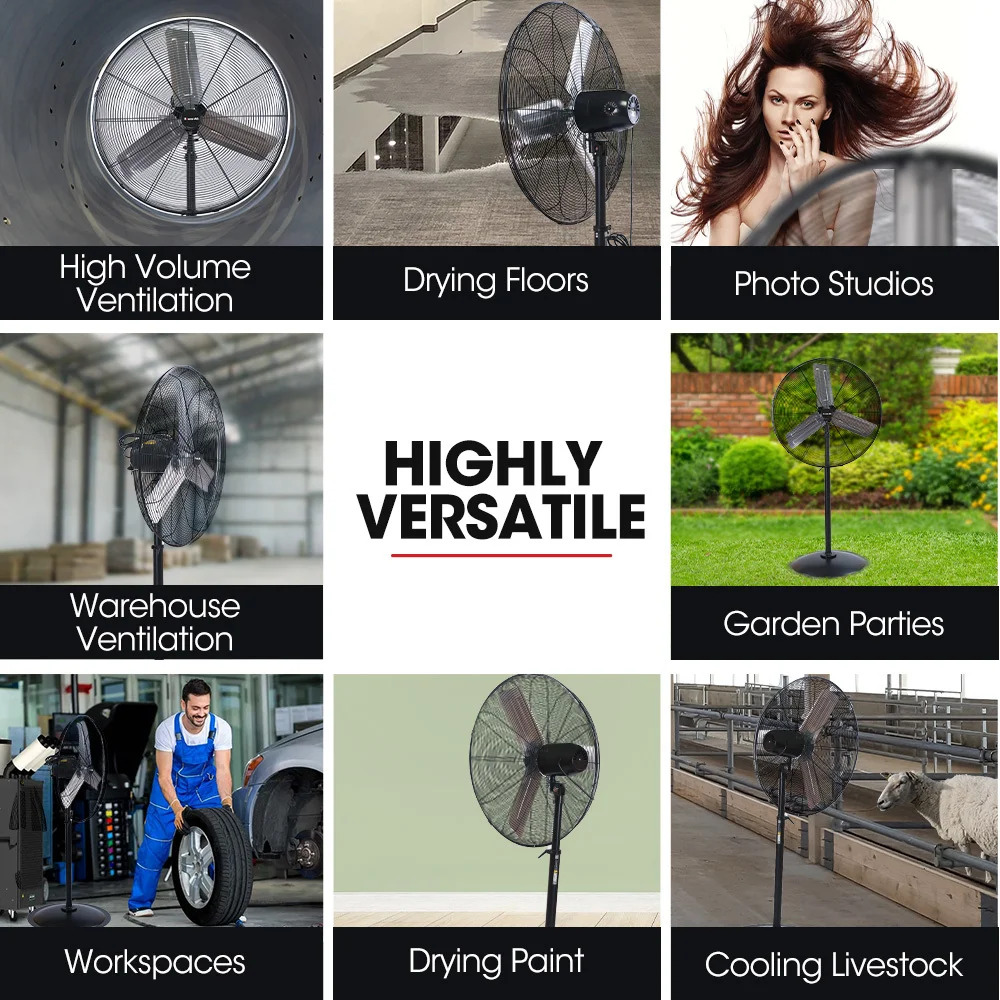 The heavy-duty all-metal construction offers long-lasting durability and corrosion resistance. The aluminium blades are designed to handle tough conditions while providing smooth and efficient airflow. The sturdy steel base and adjustable pole ensure extra protection and stability.