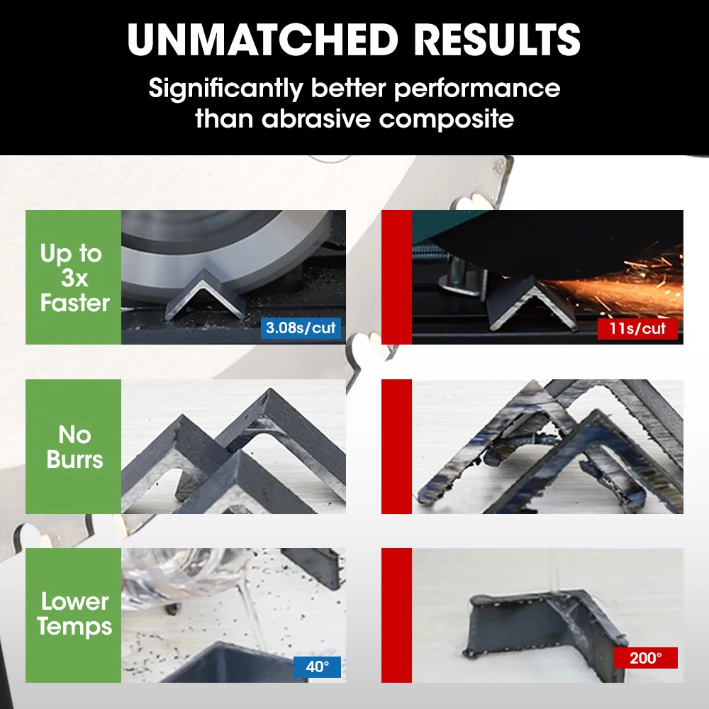 This Baumr-AG 355mm premium ceramic alloy tooth saw blade cleanly cuts ferrous metal and steel with low rpm cut off saws. Designed to last up to 25x more than standard resin composite based cut off wheels, it delivers smoother and faster cutting performance, and with virtually no sparks.