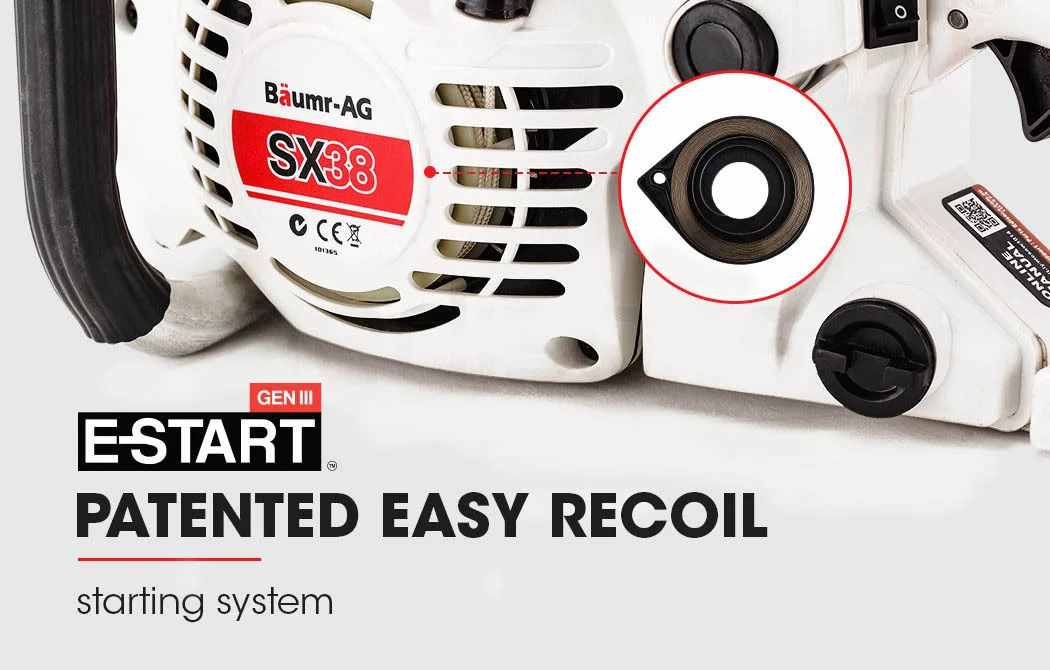 Your Baumr-AG 38cc Pro-Series Chainsaw is proof that great things come in small packages. It squeezes an incredible list of features - including a comfortable ergonomic grab bar, 360 degree cutting capability, superior oil feed, premium saw chain and lightning fast safety brake for total peace of mind. Add to this Baumr's patented 'A-Vibe' Anti-Vibration and Easy Starting Systems and you've got one seriously portable, easy to use little unit.