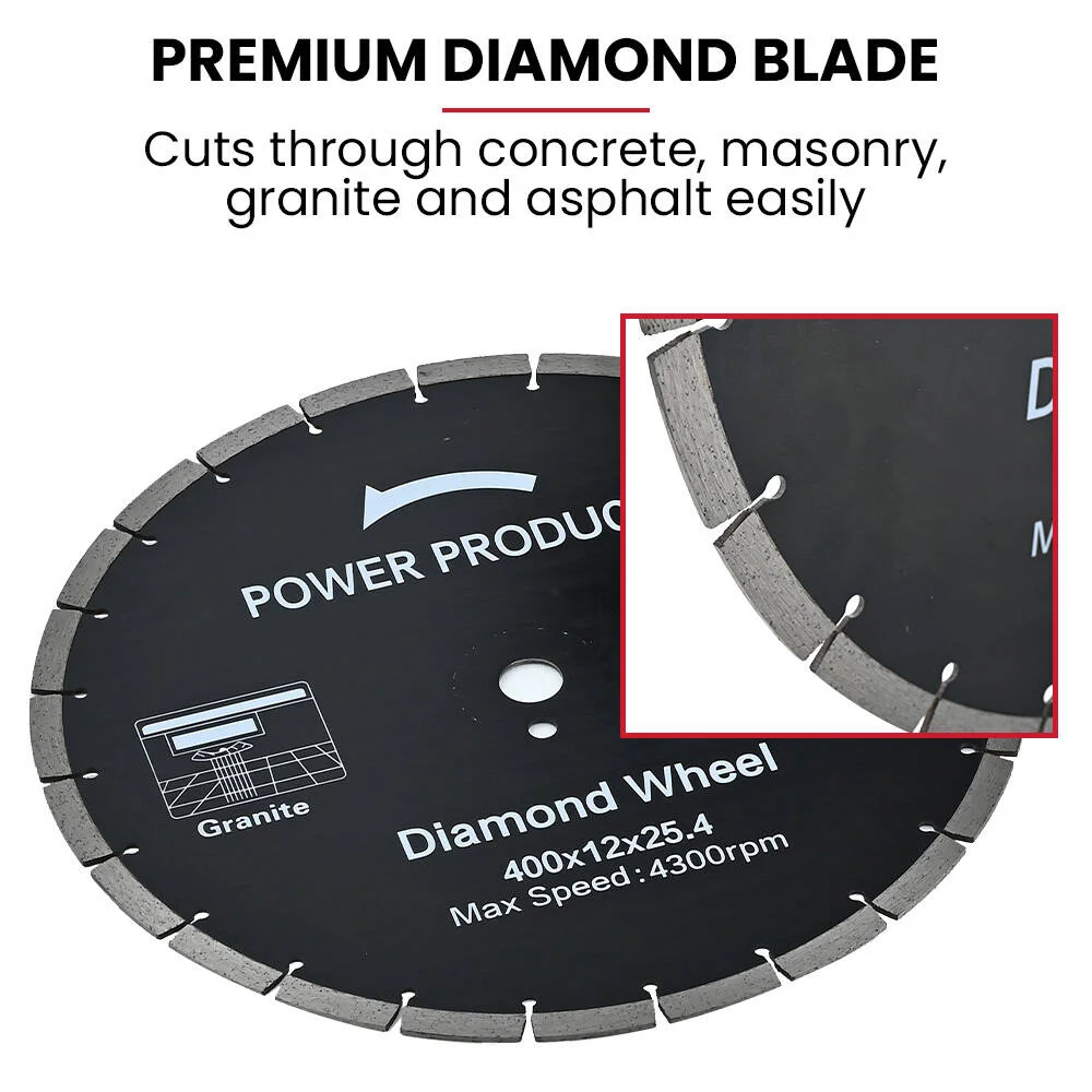 Engineered for wet and dry cutting, the CSP-1000 features a robust 400mm (16') diamond cutting wheel, achieving an impressive cutting depth of 145mm. Its integrated cooling system enhances blade life and performance while minimising dust for a cleaner work environment. The magnesium blade guard adds to its durability, ensuring safe and dependable use under the toughest conditions.