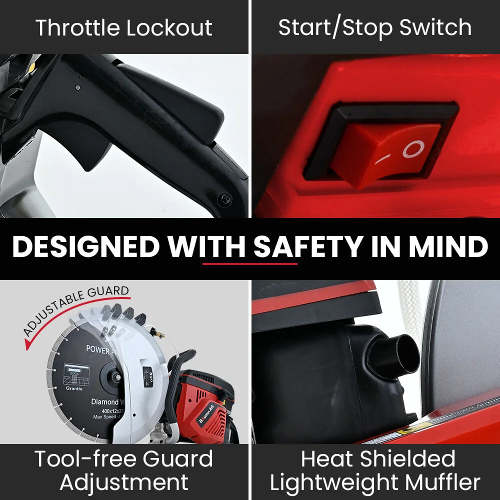 Constructed with a magnesium crankcase, the CSP-1000 is lightweight yet rugged, designed to withstand demanding tasks. Its air-cooled engine and vibration-damping system provide comfortable, fatigue-free operation, even during prolonged use. The adjustable diamond blade guard enhances safety and versatility, allowing precise control over every cut.