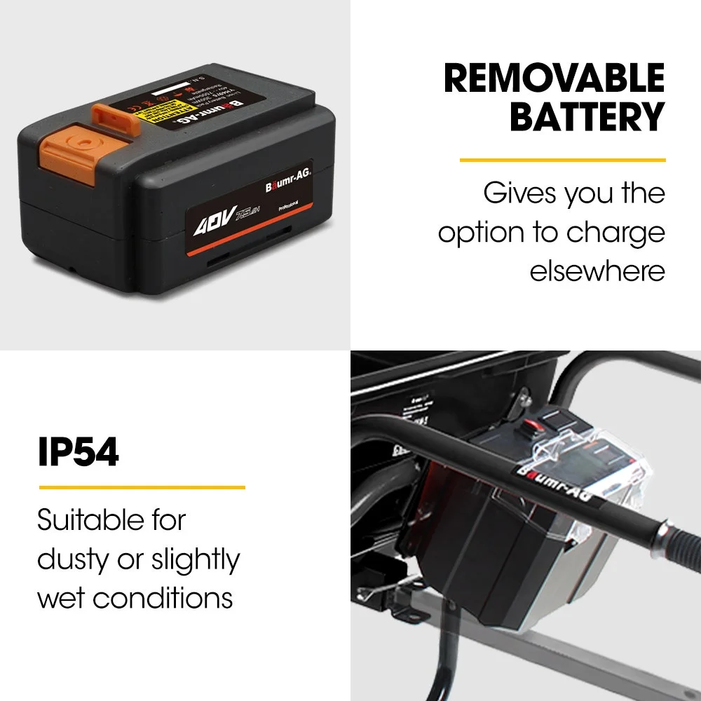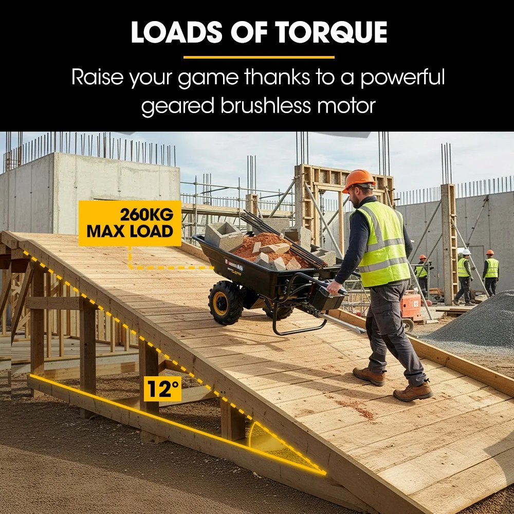The Baumr-AG BPR-1100e 40V battery-powered wheelbarrow is built to make heavy load handling faster, safer and far less demanding. Designed for construction sites, landscaping projects, farms and commercial environments, it delivers dependable performance when shifting materials over flat ground or tackling sloped terrain.