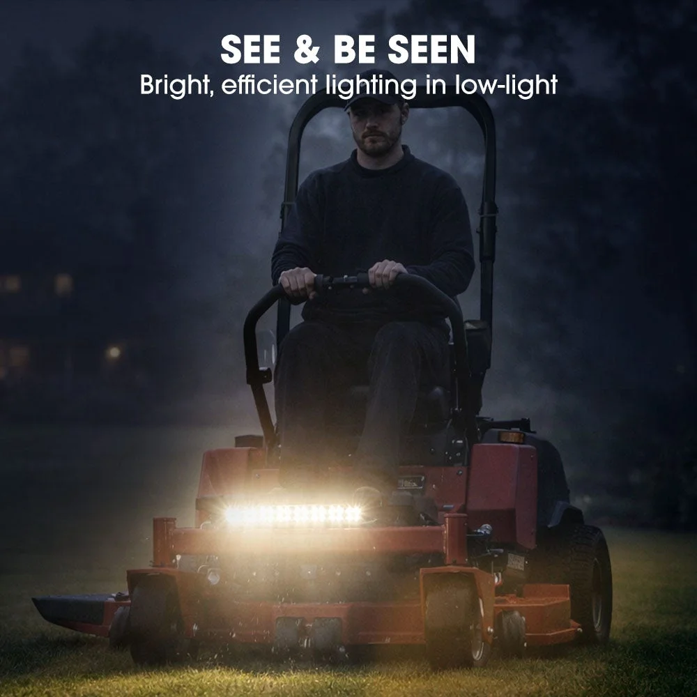 Contoured seating and soft-grip controls enhance operator comfort, while the integrated roll bar provides added safety during operation. LED headlights enhance visibility for late afternoon or low-light mowing.