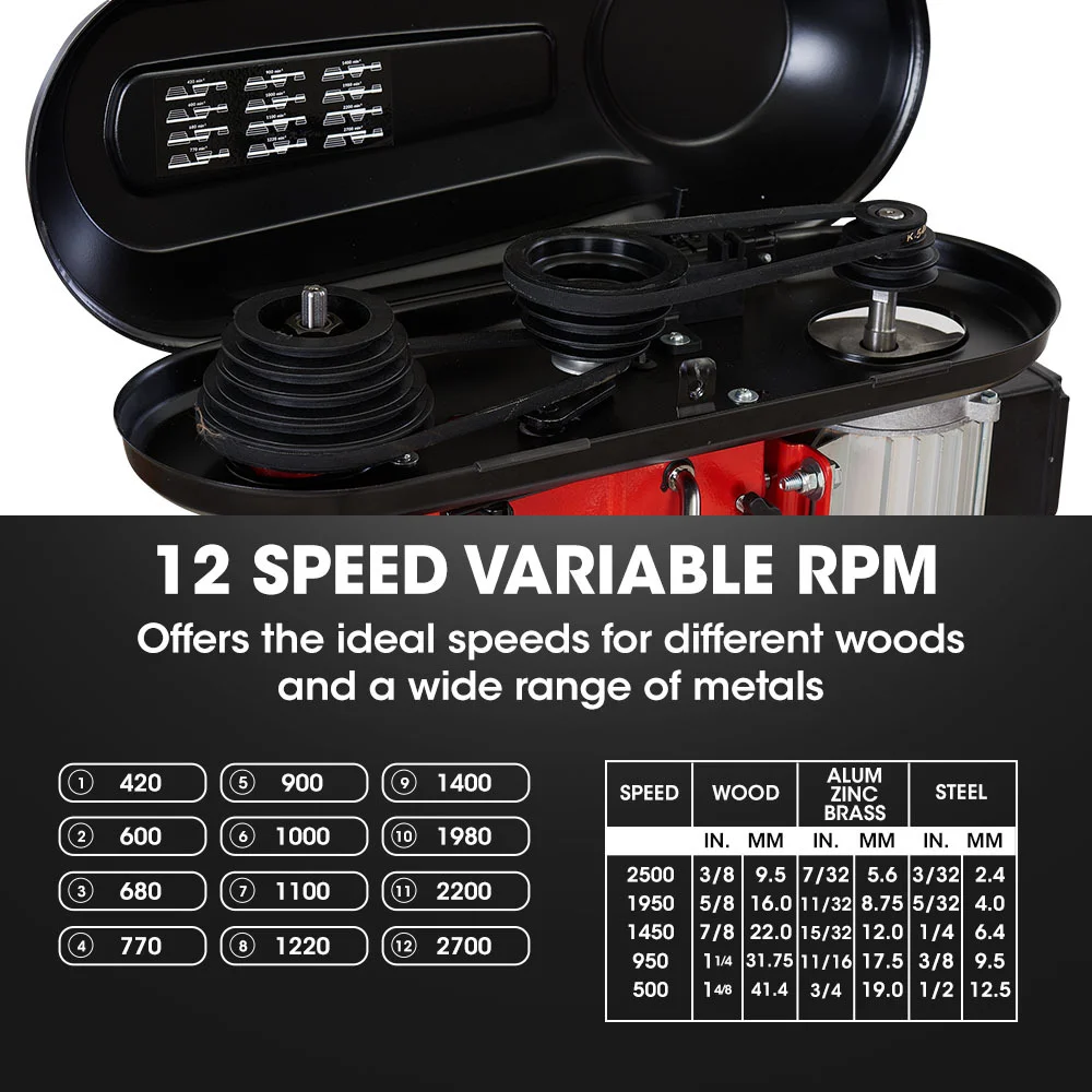 The Baumr-AG DP19 Pedestal Drill Press is the cornerstone addition to any workshop. Featuring 12 speed variable RPM settings, a 16mm solid stainless steel chuck and a 600W brushless motor offering the power and longevity you need. This floor mounted unit offers the torque, components and versatility required to execute a range of drilling tasks through a whole host of materials.
