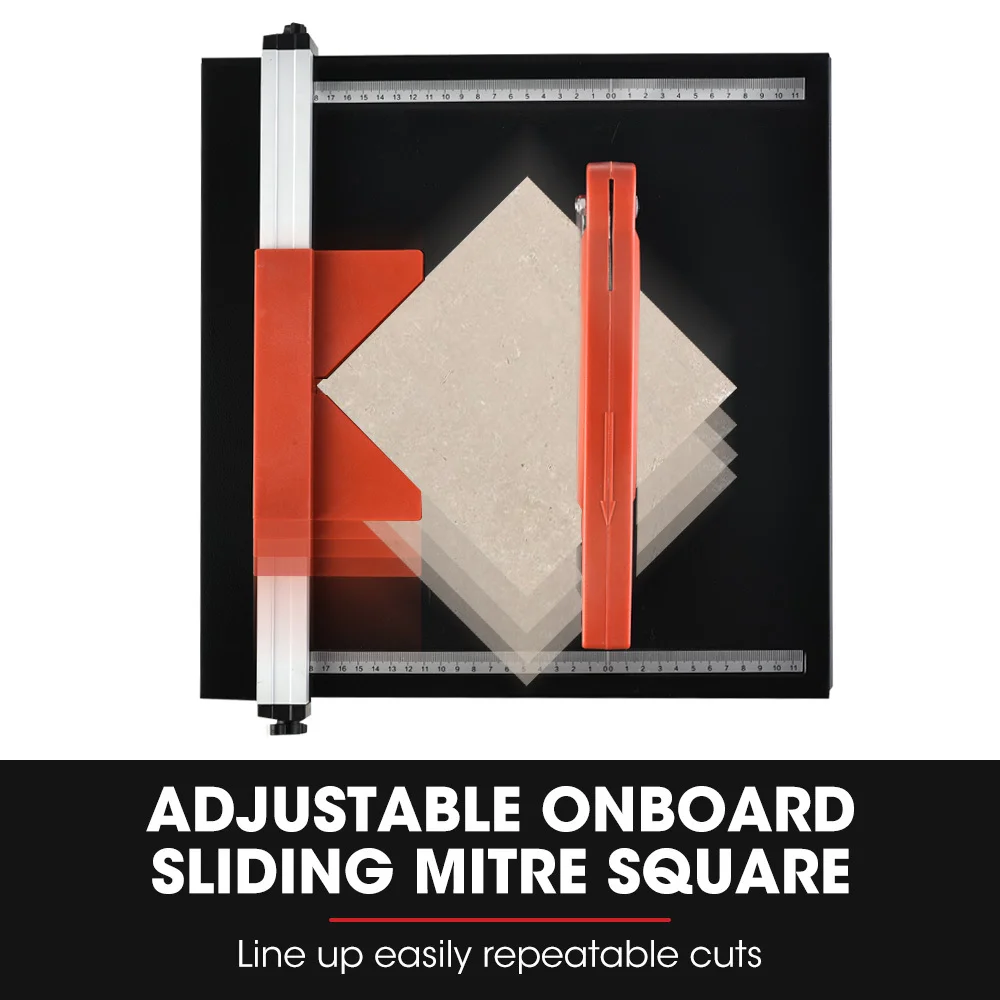 The Baumr-AG Table Tile Cutter features an ultra-tough reinforced nylon base and can accommodate almost most typical tile sizes. The rip fence meets up to two measurement scales for accurate positioning. The fence can also be detached for positioning on either side of the blade for working with different tile widths. The generous table size allows you to rip-cut tiles up to 300mm in width and unlimited length!