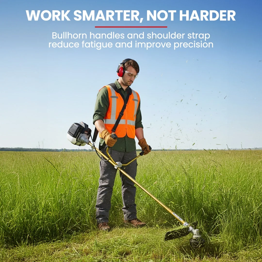 Not only will the Baumr-AG BCX720 give you a literal cut above the rest - it will also give you a figurative cut above the rest with trade quality brushcutter attachments, and Italian designed bump-feed whipper snipper head whipper snipper attachment, and a patented direct-air-injection carburettor that boosts the power of the 65cc commercial engine. A massive 4.1hp peak power will be at your command. That might sound like a handful, but thanks to the patented E-start ignition and integrated anti-vibration system, wielding that kind of power is a breeze. Featuring an ingenious E-start system, the Baumr-AG utilises two opposing memory-retaining spring coils to build and release energy that fires the engine instantly.