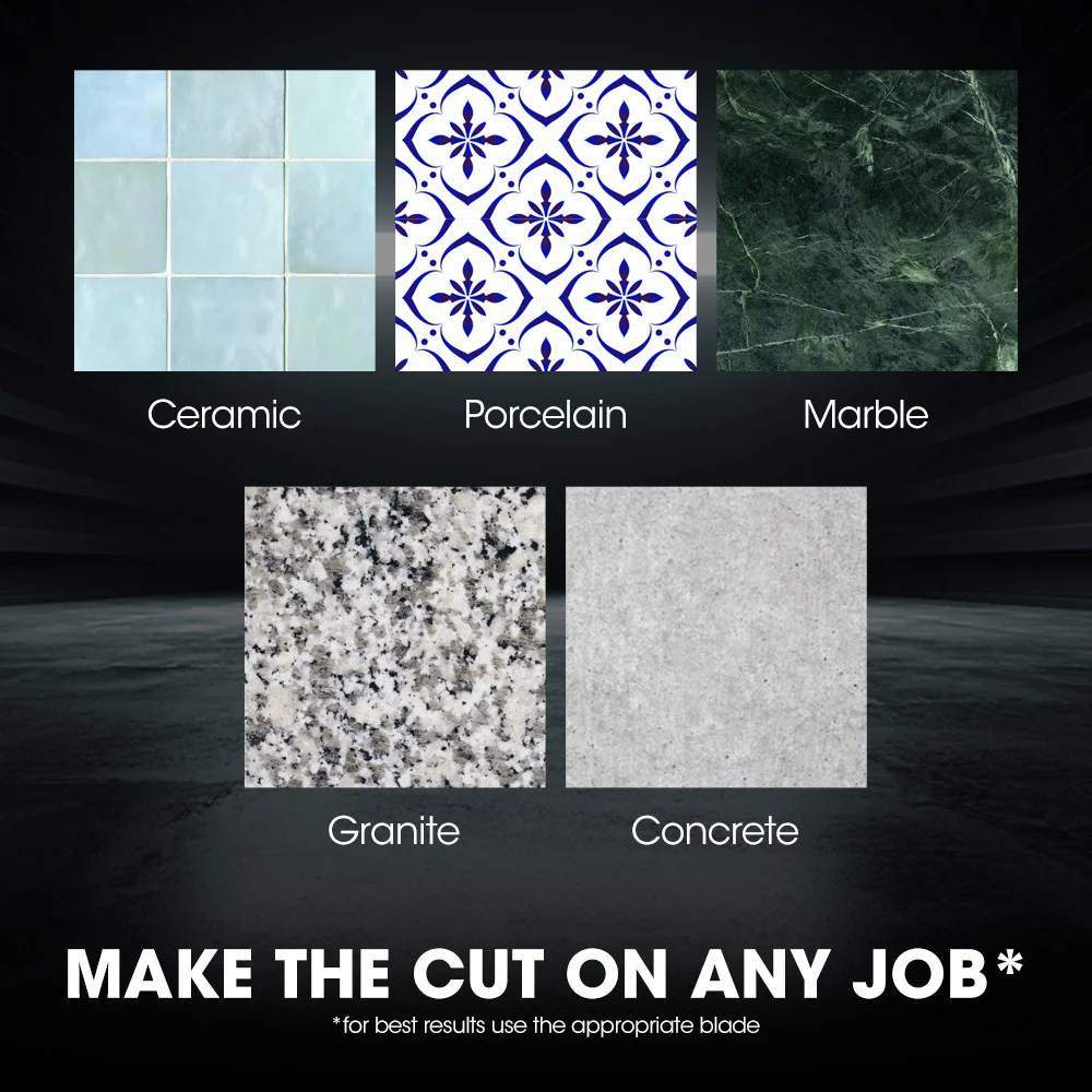 The Baumr-AG Wet Cut Tile Saw has a large deck that can accommodate almost all tile sizes. You can rip cut large format porcelain and ceramic tiles 600mm in length, as well as bevel and mitre cuts. The high-performance Diamond Blade is ideal for most ceramic and porcelain tiles. A high-performance aftermarket blade will provide optimal cutting results and enable working with dense materials like marble and granite.