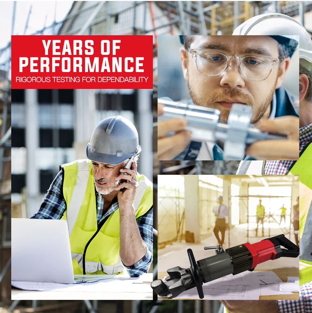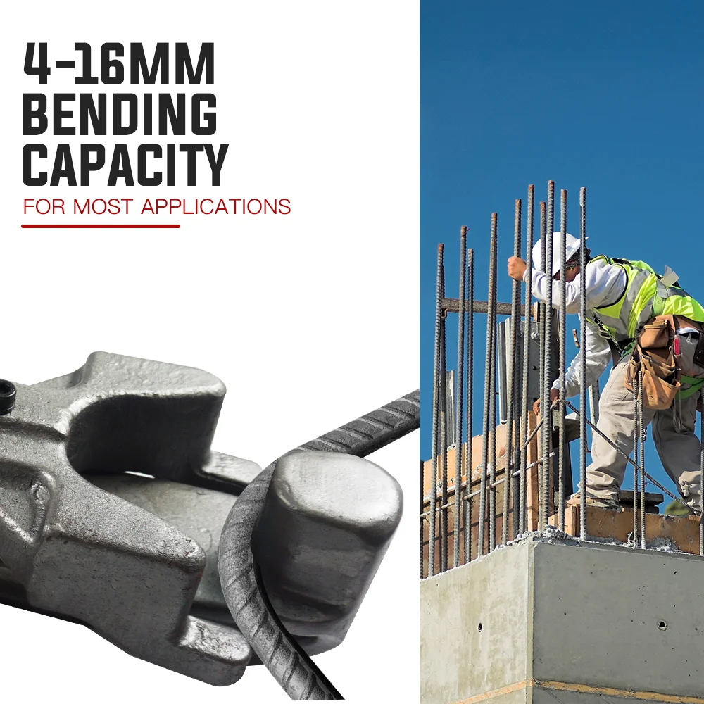 The demanding nature of Rebar bending means it's vital that quality tools are used to do the job safely and efficiently. Baumr-AG's range of reo bar bending equipment certainly fits the bill. The commercial-grade Baumr-AG RB16B Hydraulic Rebar Bender is a must have for any builder with its tough body with a very portable weight of 14kg. The front and rear handle configuration allows it to be maneuvered into confined spaces, and the front handle is designed to conveniently suit either right or left-handed operation.