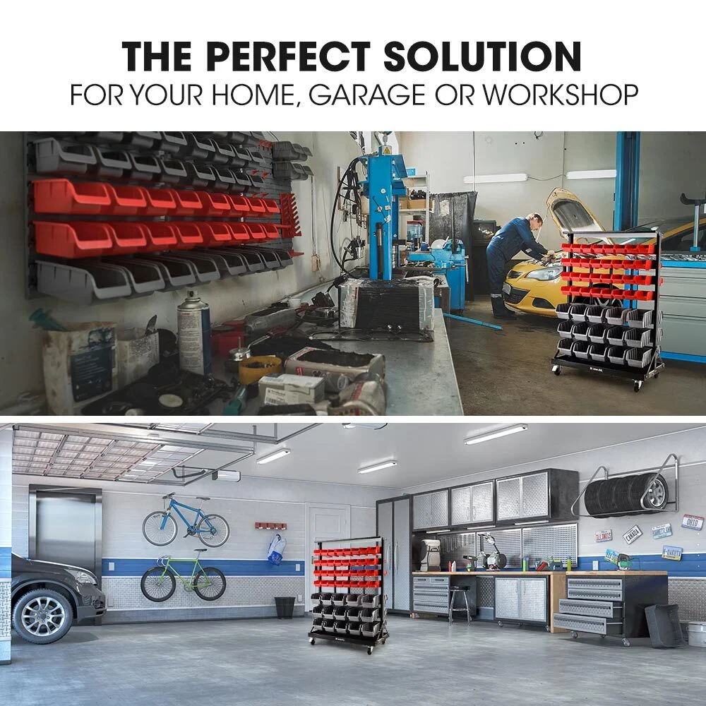 Up the top is a cover that reduces exposure to dust, and also doubles as a convenient tool tray for items that are in use. Not only that, it even has a handy measurement strip along the side. The Baumr-AG Double Sided Bin Rack System is truly the ultimate solution to your organising and storage needs!