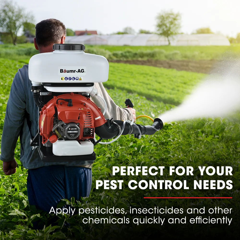 Besides being a must-have for applying pesticides, insecticides and other chemicals quickly and efficiently, the Baumr’s innovative design allows you to disperse grains, disinfect surfaces, spray livestock, and can even function as a powerful leaf blower! It’s without doubt one of the most versatile backpack blowers on the market.