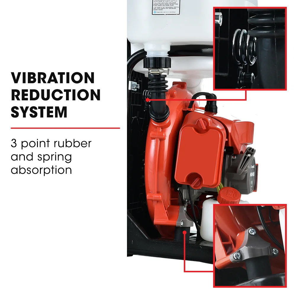 This Backpack Mist Blower offers a large 14L chemical tank and 1L fuel tank capacity–which means less messing around with refilling while you’re hard at work.