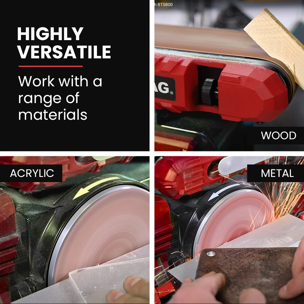 From crafting handmade treasures to chamfering carpentry workpieces, this bench belt and disc sanderis your go-to tool for various uses. Its compact and practical design makes it the perfect companion for detailed projects.