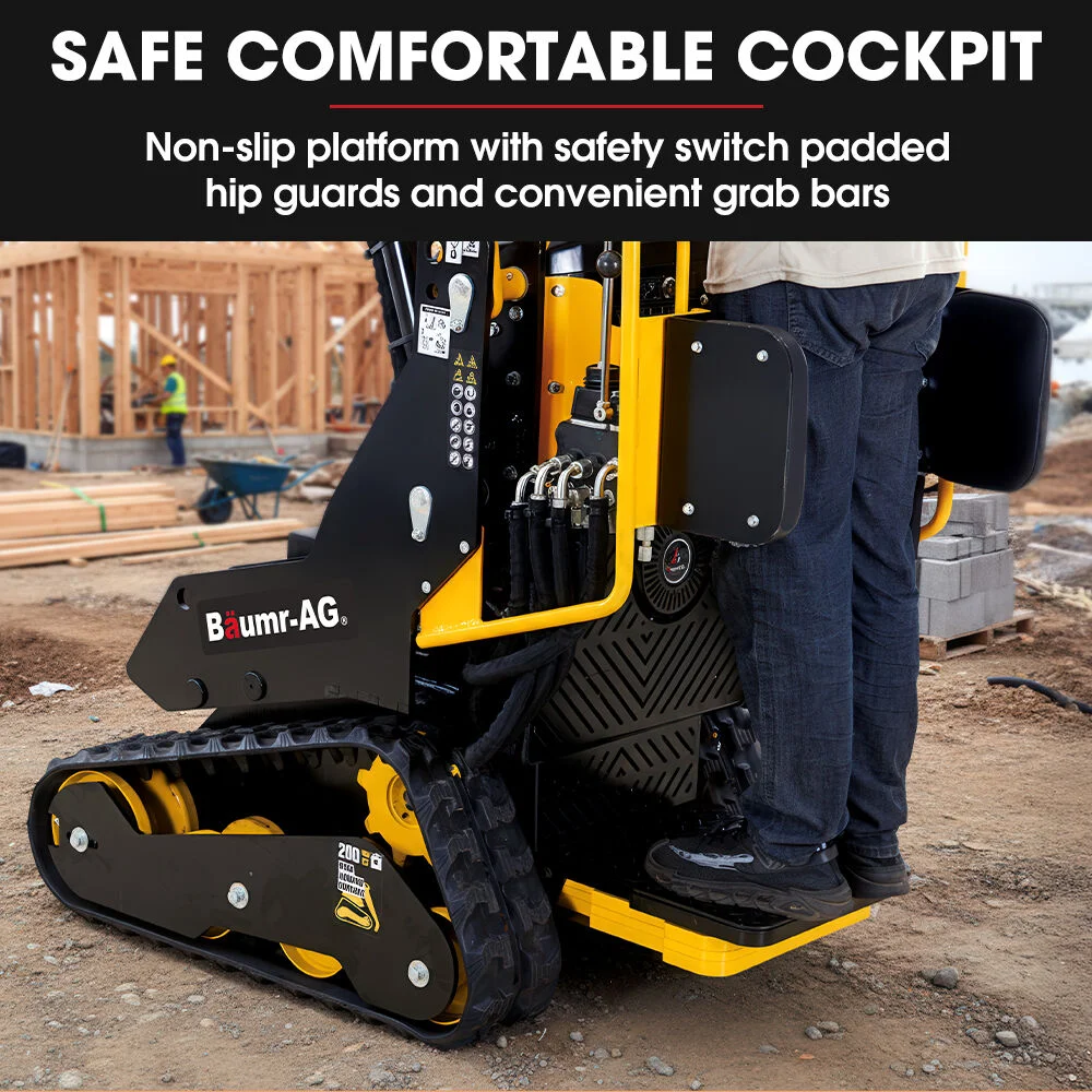 The Baumr-AG BSR5000 delivers serious grunt in a tight footprint. With an electric start 10hp 306c engine, this unit blends reliable power and easy starting. The 830mm width is ideal for navigating confined worksites, and its zero-turn radius makes pivoting in tight spots effortless.