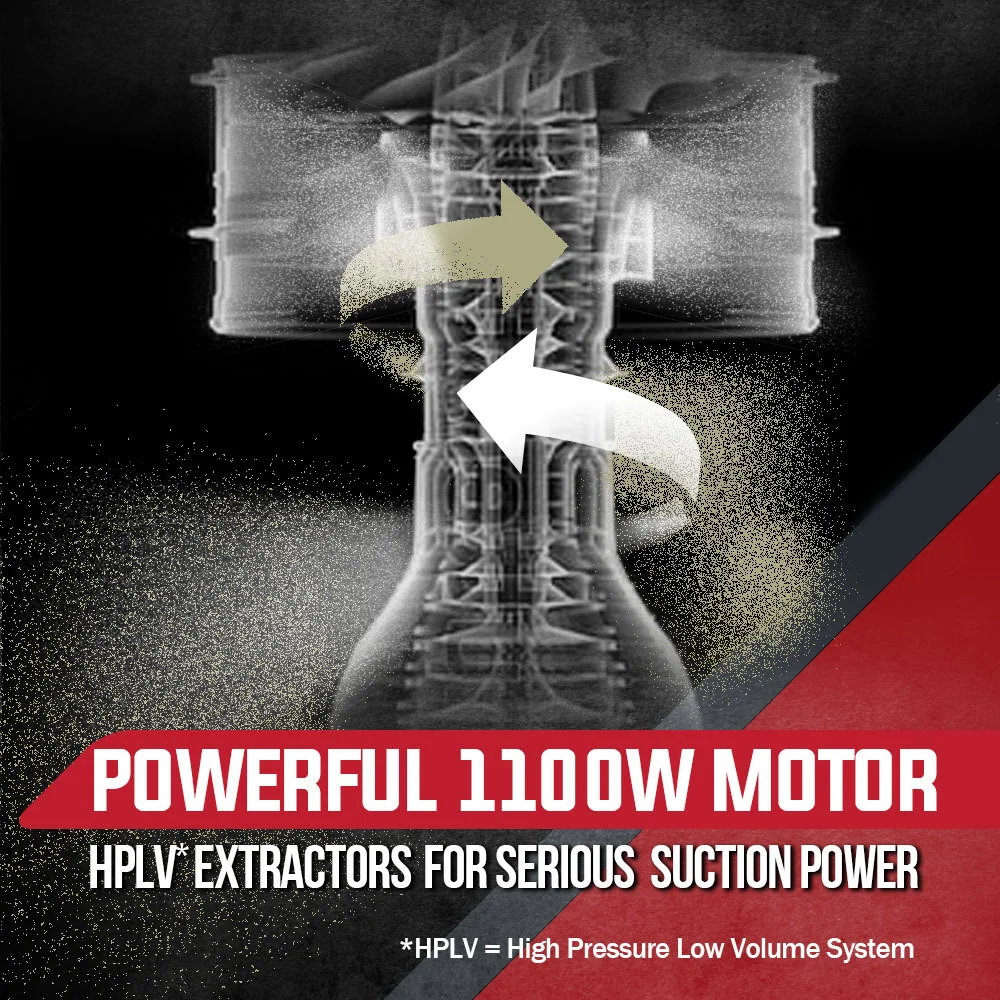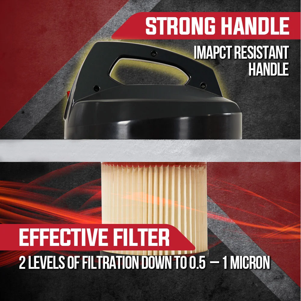 With a powerful 1100W motor, the Baumr-AG Vacuum is highly effective in performing high volume cleaning, and is a far simpler alternative to an entire fixed dust collection system. The rugged yet lightweight design and strong handle ensures portability, and the generous 50L tank allows for extended cleaning periods with less frequent emptying! Just attach the generous 2m flexible hose to your power tools via the universal attachment which has various adaptors for the right fit.