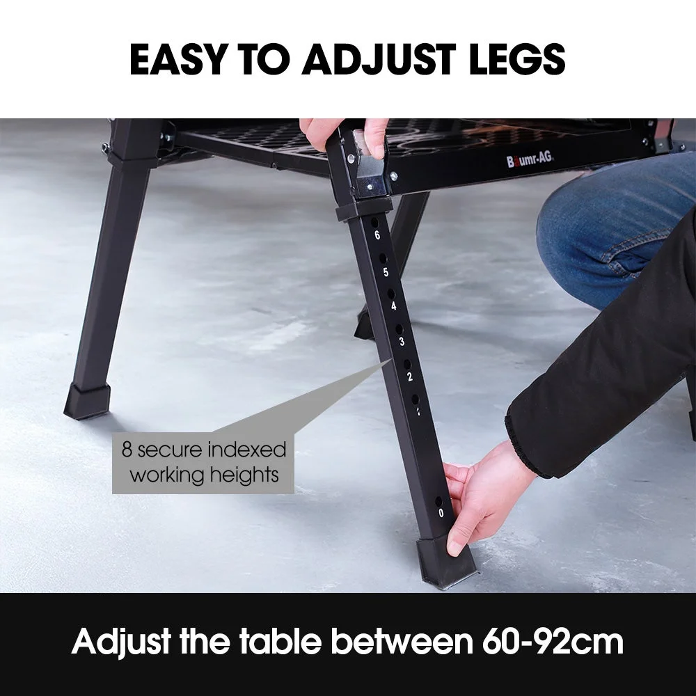 Enjoy 8 adjustable working heights from 60cm to 92cm. Each leg adjusts independently, making it ideal for uneven surfaces. Anti-slip feet ensure stability while protecting your flooring.