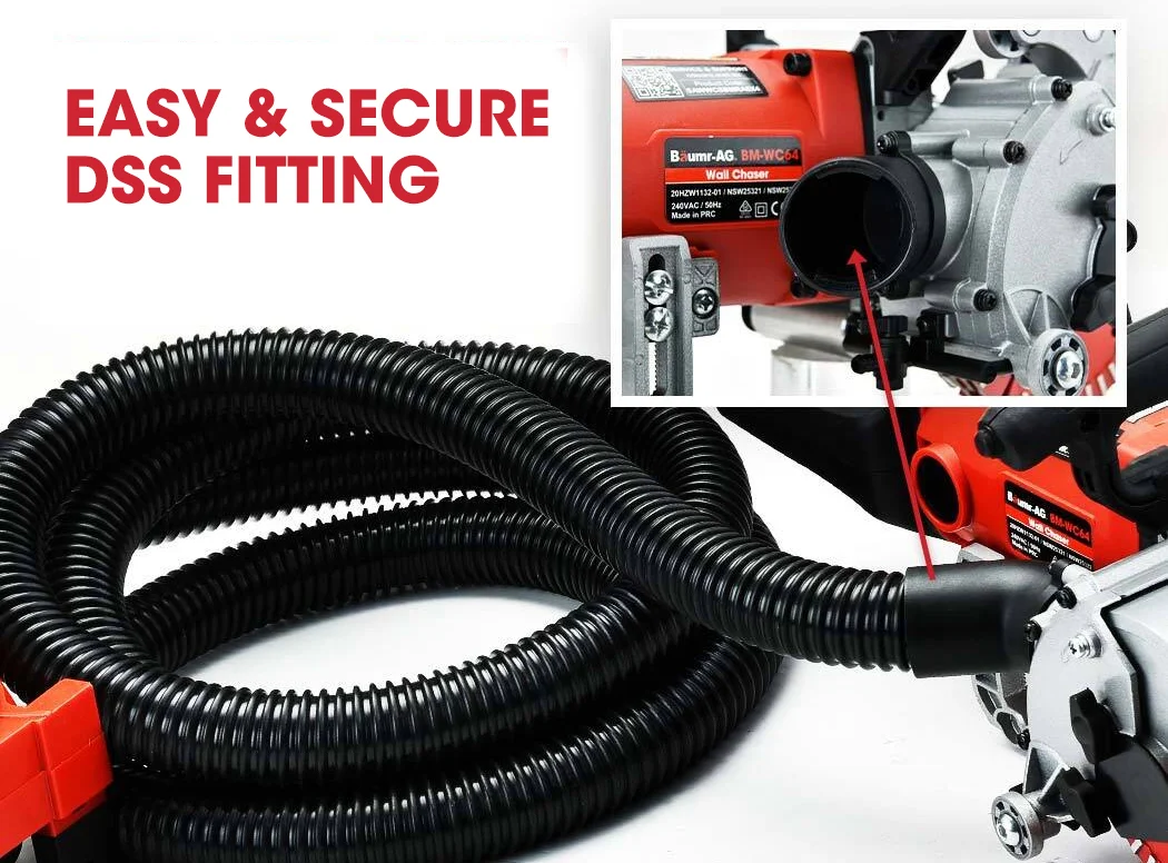 Work smarter and enjoy the satisfaction of completing your projects in a clean, dust-free work space with The Baumr-AG BM-WC64 Wall Chaser and Vacuum combo. It offers fast and dust-free chasing and is ideal for concealment of conduit of wires.