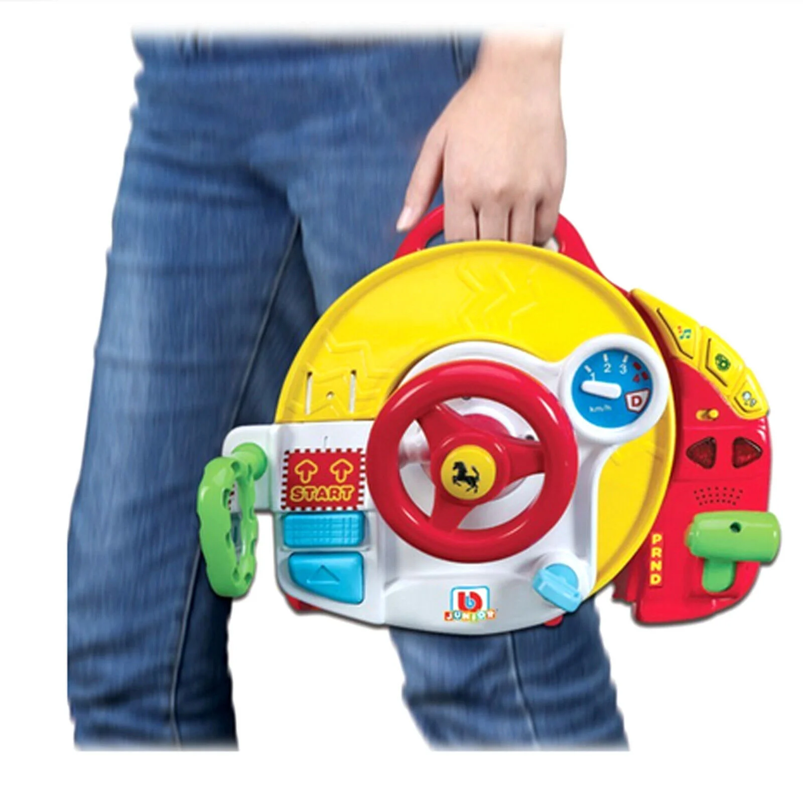 Spin the wheel and press the buttons to play vehicle sounds and melodies; swivel the mirrors and honk the horn; then, convert the wheel into a incredible play ramp to launch the included Ferrari toy car.