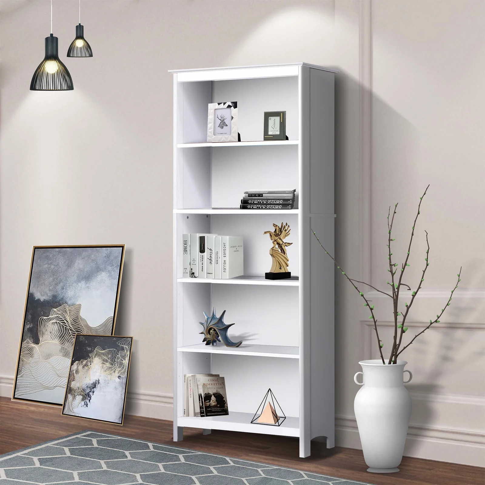 Includes: 5 Shelves (3 x adjustable), Anti-Tip kit