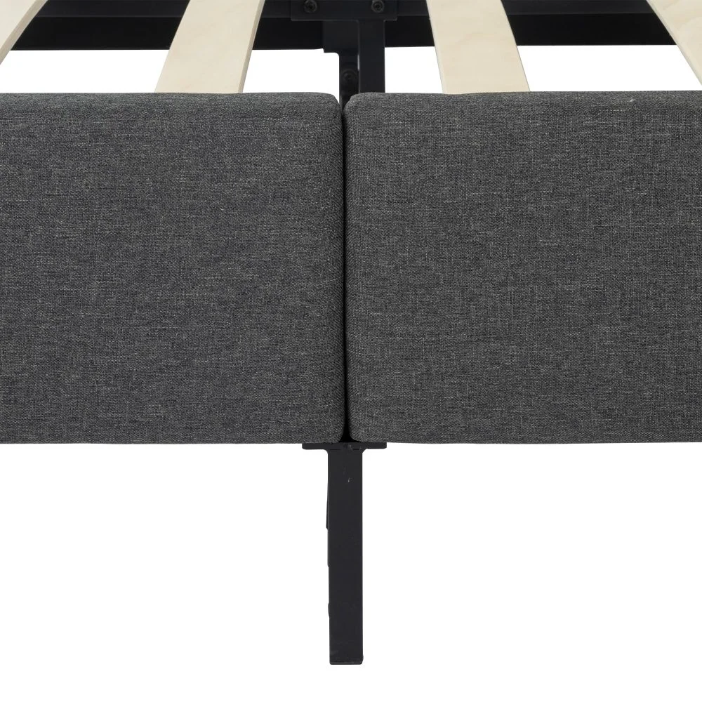 This bed frame will be the best choice for your bedroom bed frame. It will not disappoint you. This fashionable bed frame is very eye-catching, with a proper height and a very low-key design. It is suitable for all types and styles of bedrooms. This bed has different sizes. You can choose your favorite size according to your needs. The design with dark gray as the main body is more simple and modern, which is perfect for your sleeping space.