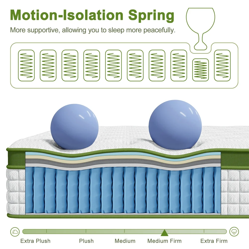 Designed with a balanced medium-firm feel, it masterfully cushions your body while maintaining proper spinal alignment, ideal for side sleepers and those seeking back pain relief. The core features hundreds of individually wrapped pocket coils that respond independently, providing zoned support to 7 key areas and effectively eliminating motion transfer for undisturbed sleep.
