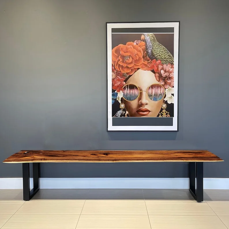 A timeless addition to your home! Either as a dining bench, hall bench or bed end. Handcrafted off whole piece of solid timber from the beautiful raintree wood