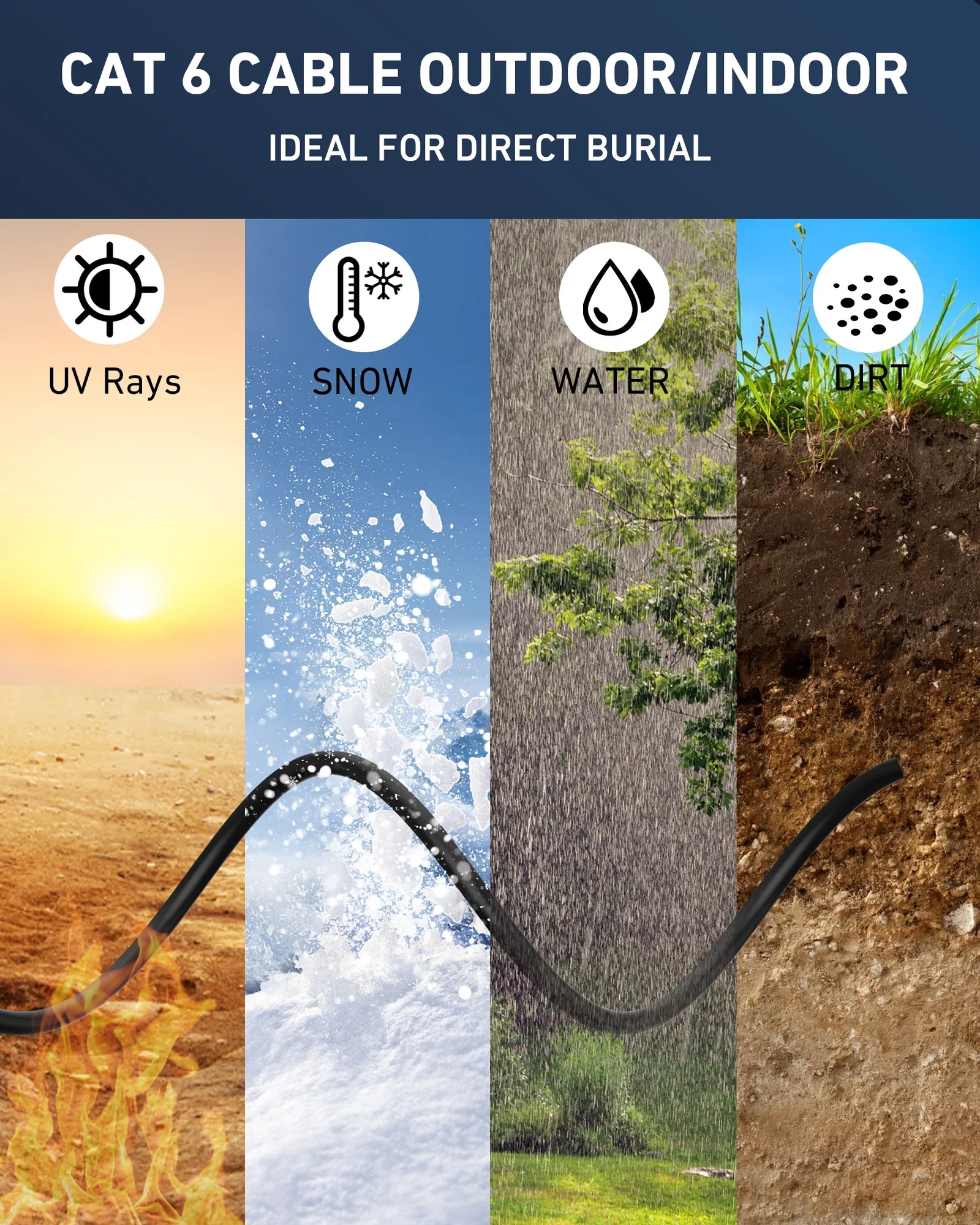 Durable PVC jacket resists water, UV rays, and extreme temperatures for reliable outdoor use